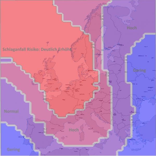 Auch in weiten Teilen Europas herrscht in den kommenden Tagen ein erhöhtes Schlaganfallrisiko vor.