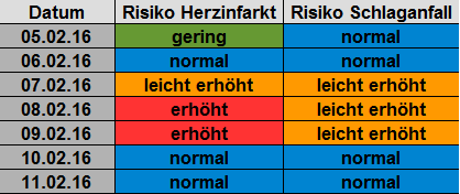 Seit Jahren ist bekannt, dass atmosphärische Veränderungen zu einer Häufung von Schlaganfällen und Herzinfarkten führen können. Insbesondere bei schnellen Änderungen von Temperaturen kommt es einem Anstieg von Fällen bei Risikopatienten. Besonders Menschen mit Vorerkrankungen sind betroffen. Das Wetter ist allerdings nicht die Ursache des Herz- Kreislaufproblems, sondern Vorschädigen zusammen mit Wetterstress führen zum akuten Auslösen des Herzinfarktes oder Schlaganfalles.