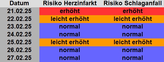 Die letzten Februartage halten überwiegend normale bis leicht erhöhteSchlaganfall- und Herzinfarktrisiken bereit.