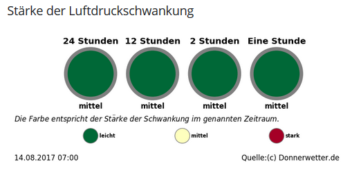 Weiterhin gibt unsere Luftdruckampel unseren Nutzern nun direkt Aufschluss darüber, welche Schwankungen in den oben genannten Zeiträumen vorlagen.