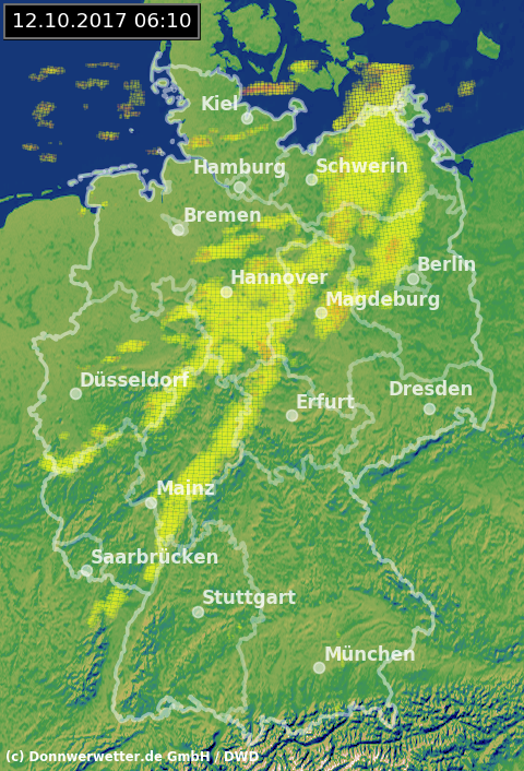 Während es gestern fast überall trocken blieb, zieht aktuell eine schwache Kaltfront durch Deutschland.