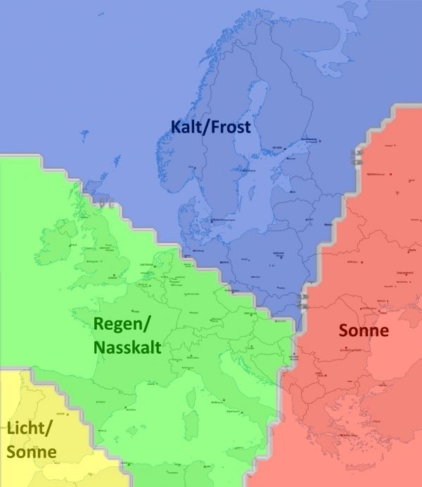 Welche Wetterreize in welchen Teilen Europas am Mittwoch und Donnerstag vorherrschen, sehen Sie in unserer Grafik.