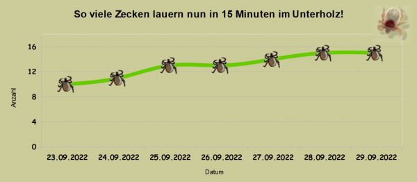 Aktuell muss in deutschen Wäldern mit durchschnittlich 10 bis 15 Zecken in 15 Minuten gerechnet werden.