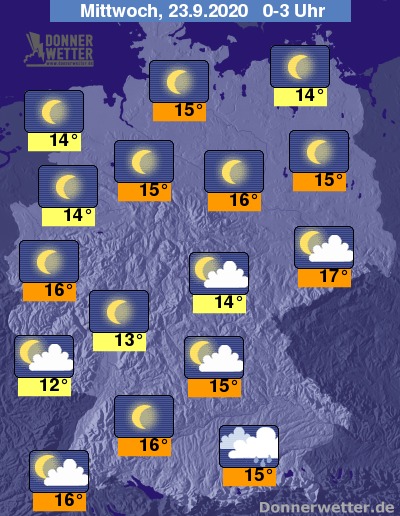 Die Temperaturen sinken in der Nacht auf Werte um 16 Grad in Dresden und um 11 Grad im Saarland.