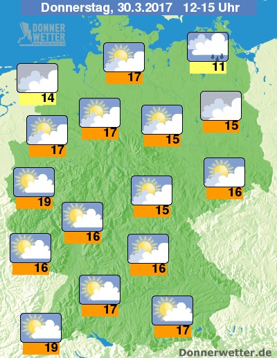 Hier sehen Sie die Höchsttemperaturen für den Freitag (31.03.2017):