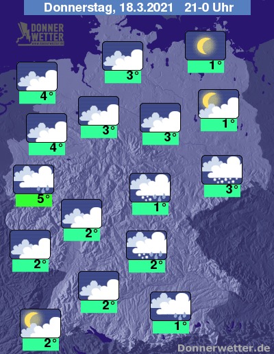 Im Süden und Osten bleibt der Himmel weitgehend bedeckt, nur im äußersten Nordosten wechseln sich am späten Abend Sterne und lockerer oder aufgelockerter Bewölkung ab, und verbreitet muss mit Regen, Schneeregen oder Schneeschauern gerechnet werden.