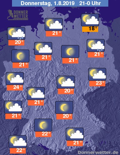 Bis zu den Frühstunden kühlt die Luft auf Werte zwischen 12 Grad in Thüringen und 17 Grad in Schwaben ab.