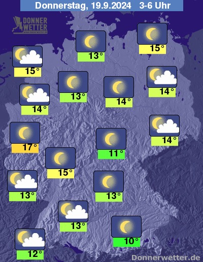 In der Nacht zum Donnerstag ist es sternenklar oder nur gering bewölkt, dabei bleibt es trocken. In den frühen Morgenstunden kann sich vor allem im Norden und Nordosten sowie südlich der Donau Nebel oder Hochnebel bilden.