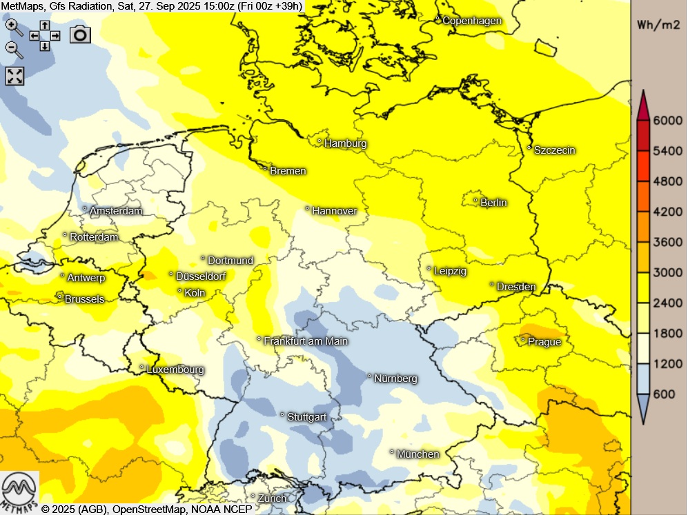 Sonneneinstrahlung Samstagnachmittag (15:00 Uhr) nach GFS