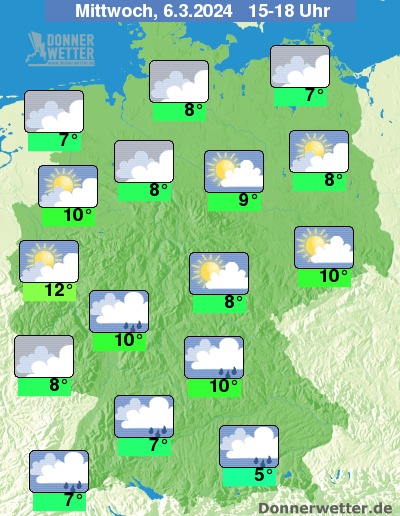 Temperaturen am Nachmittag um 5 bis 12 Grad.