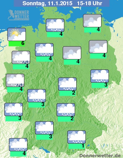 Am heutigen Tag bleibt es am Himmel weitgehend stark oder dicht bewölkt, größere Auflockerungen sind am ehesten an der Nordsee möglich. Dazu fällt zeitweise, zum Teil auch kräftiger Schnee oder Schneeregen, nach Westen und Norden hin auch Regen. Die Temperatur steigt auf nasskalte Werte zwischen 1 Grad in München und 6 Grad in Emden. Der Wind weht frisch bis stark, in Böen auch stürmisch. An den Küsten und auf den Bergen herrscht teils Sturm, dabei können vereinzelt schwere Sturmböen auftreten.
