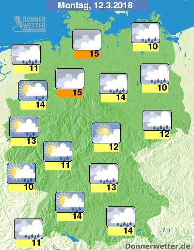 Am Montag erwartet uns wechselhaftes Wetter aus dichten Wolken, Auflockerungen und zeitweiligen Schauern. Die Temperatur steigt auf vorfrühlingshafte 10 Grad an der Ostsee und bis 15 Grad in Hannover.
