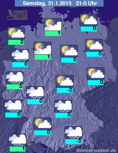 In der Nacht zum Sonntag halten sich in der Südhälfte von Deutschland meist dichte Wolken und es kann zu weiteren, zum Teil langanhaltenden Schneefällen kommen. Auch im Osten bleibt die Wolkendecke weitgehend dicht, hier fällt aber nur gelegentlich etwas Schnee. In den anderen Landesteilen ist es teils aufgelockert, teils stark bewölkt und weitgehend trocken. Die Temperatur sinkt auf 2 Grad in Wilhelmshaven und bis -3 Grad in Franken.