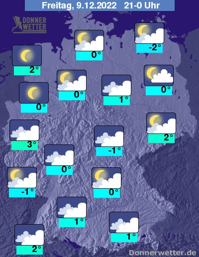 Die Temperaturen gehen bis Mitternacht auf Werte um 3 bis -2 Grad zurück.