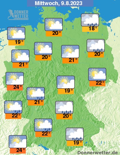 Heute ist es im Süden noch oft bedeckt und hier bilden sich gebietsweise Schauer. Im übrigen Bundesgebiet ist es teils stark, zunehmend aber aufgelockert bewölkt, dazu bilden sich noch örtliche Schauer. Gegen Abend zeigen sich dann immer mehr Aufheiterungen und es bleibt trocken. Die Temperatur erreicht 18 Grad in Rostock und bis 24 Grad in Köln.