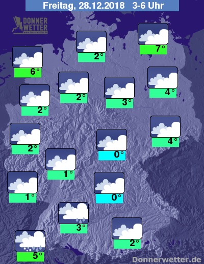 Bis zu den Frühstunden kühlt die Luft auf 0 bis 4 Grad ab, stellenweise gibt es leichten Frost. Nur im Küstenbereich von Nord- und Ostsee bleibt es mit 5 bis 7 Grad milder.