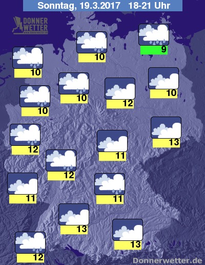 Heute Abend bleibt der Himmel bedeckt, dabei fällt vor allem im Norden häufig Regen, in den übrigen Landesteilen sind auch längere Regenpausen möglich. Die Abendwerte liegen zwischen 9 und 13 Grad.