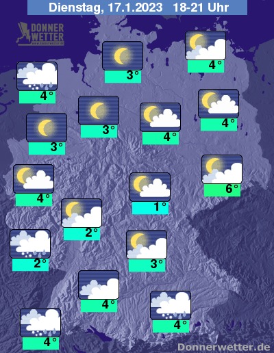 Heute Abend lockert und klart der Himmel über der Nordhälfte verbreitet auf, bis auf einzelne Schnee- oder Regenschauer im Nordseeumfeld bleibt es weitgehend trocken. Weiter nach Süden werden die Wolken dichter und im Alpenvorland und im Südwesten der Republik fällt gebietsweise Schnee oder Regen, sonst bleibt es meist trocken. Die Temperatur liegt bei 1 Grad in Erfurt und 6 Grad in Dresden. An der See ist es noch oft stürmisch.
