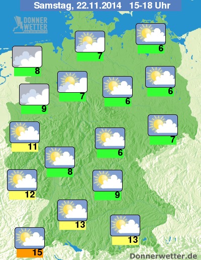 Heute Nachmittag kann sich die Sonne zwischen den Wolken meist häufig zeigen und gebietsweise wird es sogar sonnig. Teils dichte Wolken ziehen dagegen in den Norden und Nordwesten des Landes, dabei bleibt es aber noch meist trocken. Im übrigen Deutschland bleibt es ohnehin trocken. Die Temperatur liegt bei 6 Grad an der Müritz und bis 15 Grad im Oberrheingraben.
