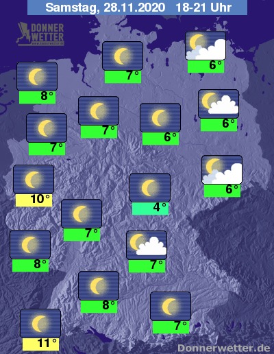 Heute Abend zeigt sich das Land größtenteils sternenklar. Oft einige und teils dichte Wolken halten sich im Osten und Nordosten des Landes, aber auch sonst ist es hier und da trüb oder stark bewölkt, dazu bleibt es trocken. Die Temperatur liegt noch bei 4 Grad im Eichsfeld und bis 11 Grad im Breisgau.