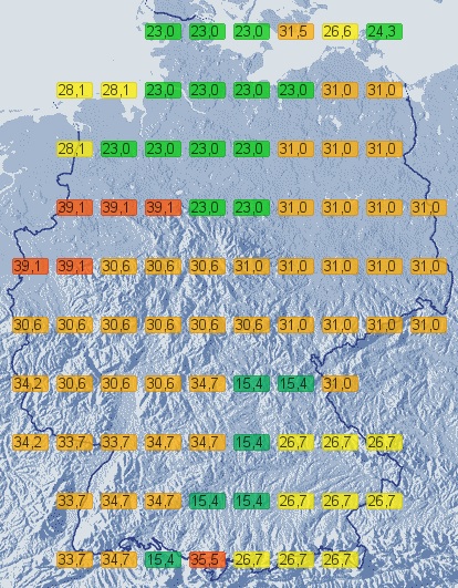 Schon jetzt um 12 Uhr mittags liegt die fühlbare Temperatur vielerorts im Land bei über 30 Grad. In der Sonne gehen die Werte inzwischen sogar schon auf die 40 Grad zu. Und auch die nächsten Stunden versprechen erstmal keine Abkühlung.