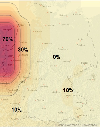 Im Folgenden noch die Grafik für das Gewitterrisiko heute Abend: