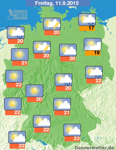 Heute zeigt sich der Süden und Westen bei heiterem und oft sonnigem Wetter weitgehend freundlich und trocken. Über der Nordosthälfte der Republik sind zwar ebenfalls heitere Abschnitte möglich, hier können sich im Tagesverlauf jedoch einige, teils kräftige Schauer und auch Gewitter entwickeln. Die Temperatur steigt auf 17 Grad an der Müritz und bis 23 Grad in München.