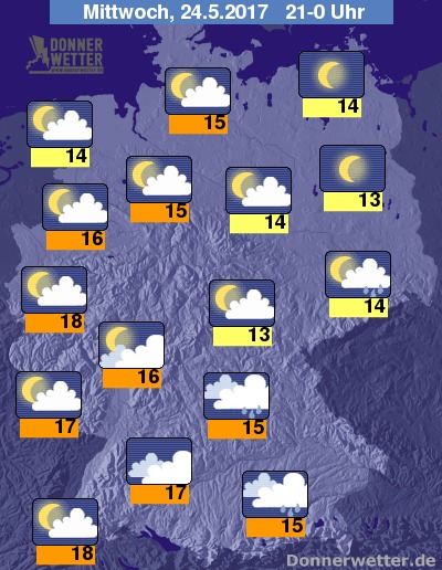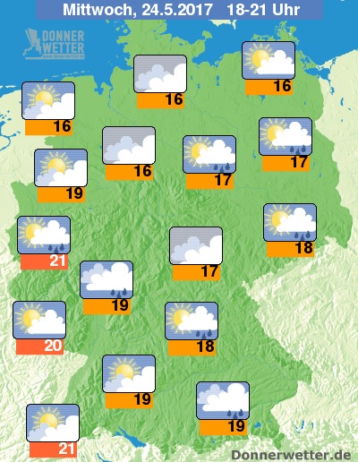 Die Temperaturen liegen am Abend um 16 Grad im Nordwesten bei Bremen und um 21 Grad im Westerwald.