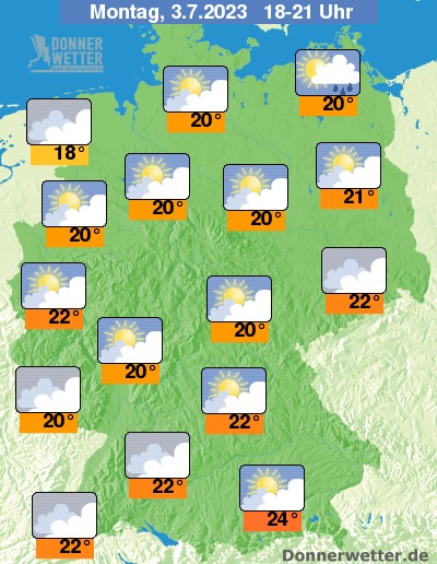 Heute Abend lockert es häufig weiter auf, nicht selten zieht aber auch starke Bewölkung durch. Im Umfeld von Nord- und Ostsee sind dazu vereinzelte Schauer möglich, sonst bleibt es weitgehend trocken. Die Temperatur liegt bei 18 Grad in Cuxhaven und bis 24 Grad in München.