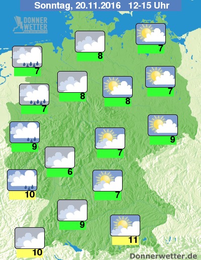 Heute bleibt es über der Osthälfte meist locker oder aufgelockert bewölkt und dabei trocken, in den übrigen Landesteilen ziehen von Westen her zunehmend dichte Wolken herein und nachfolgend fällt auch zum Teil kräftiger Regen. Die Temperatur steigt auf 7 bis 11 Grad. Der Wind weht über dem Westen und Norden oft stark, an der See ist es verbreitet stürmsich.