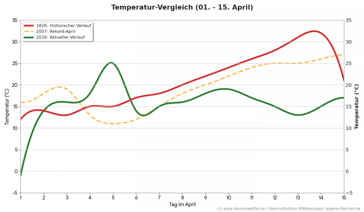 Gehen wir genau 200 Jahre zurück. Der April 1826 startete als extremes 5-Sigma-Ereignis mit Rekordhitze und Dürre im Frühjahr in Europa.