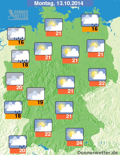 Der Start in die neue Woche gestartet sich gemischt, aber insgesamt doch recht angenehm. Meist zieht aufgelockerte, zeitweise jedoch auch starke Bewölkung durch, dabei bilden sich in Küstennähe bzw. im Norden Deutschlands hier und da Schauer und auch einzelne Gewitter, auch im Südwesten des Landes fällt vereinzelt mal ein Schauer, sonst bleibt es aber weitgehend trocken. Die Temperatur steigt auf 16 bis 22 Grad.
