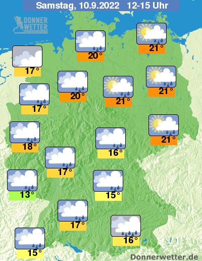 Heute Nachmittag ziehen häufig dichte Wolken durch, teilweise können sich aber auch Auflockerungen zeigen. Es bilden sich allerdings wiederholt Schauer, örtlich entwickeln sich auch Gewitter. Die Temperatur liegt bei frischen 13 Grad im Saargau und bis 21 Grad in der Lausitz.