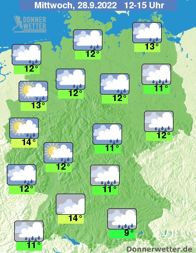 Heute Nachmittag bleibt es zumeist bedeckt und es fällt zeitweise Regen. Im Westen lockert die Bewölkung hier und da auf, hier bilden sich gebietsweise Schauer. Die Temperatur liegt bei 9 Grad in Oberbayern und bis 14 Grad in der Kölner Bucht.