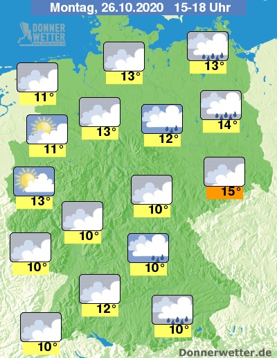 In den Nachmittagstunden bleibt der Himmel über weiten Landesteilen bedeckt oder es ist stark bewölkt. Auflockerungen beschränken sich in den kommenden Stunden vor allem auf den äußersten Westen und Nordwesten sowie Teile Sachsens. Vor allem in den früheren Nachmittagsstunden muss verbreitet mit Schauern gerechnet werden, im Osten und Südosten kann es zeitweise auch kräftiger regnen.