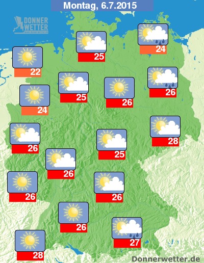 Heute bilden sich im Osten und Nordosten des Landes anfangs noch einzelne Schauer und vereinzelte Gewitter, sonst ist es bereits meist locker oder aufgelockert bewölkt und trocken. Im Tagesverlauf wird es dann verbreitet sonnig und nur am Alpenrand halten sich oft noch viele Wolken, aber auch hier bleibt es trocken. Die Temperatur steigt auf 22 Grad an der Nordsee und bis 28 Grad am Bodensee.
