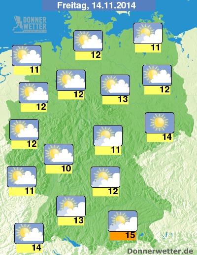 Der heutige Freitag dürfte für die meisten von uns der schönste Tag dieser Wetterwoche werden. Schon zu Beginn des Tages zieht meist nur lockere bis aufgelockerte Bewölkung durch, wobei sich die Sonne immer wieder zeigen kann. Besonders im Osten des Landes ist es auch verbreitet sonnig. Dagegen ziehen in den westlichen Landesteilen im Tagesverlauf zunehmend auch dichte Wolken auf, die gegen Abend im Westen auch Regen bringen können, sonst bleibt es aber trocken. Die Temperatur steigt auf 10 Grad im Westerwald und bis 15 Grad in München.