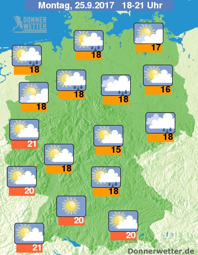 Heute Abend zeigt sich vor allem der Norden, jedoch auch der Osten Deutschlands meist stark, teils aber auch aufgelockert bewölkt, dazu bilden sich wiederholt Schauer. Deutlich freundlicher ist es über weiten Landesteilen von West- und Süddeutschland, hier scheint die Sonne häufig und Schauer bleiben eher die Ausnahme. Die Temperatur liegt bei 15 bis 21 Grad.