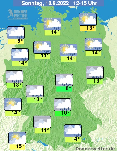 Heute Nachmittag ziehen häufig dichte Wolken über uns hinweg, dazwischen kann sich vor allem im Norden und im Südwesten auch mal die Sonne zeigen, jedoch bilden sich verbreitet Schauer und im Norden auch nicht selten auch Gewitter. Die Temperatur liegt bei teils 8 Grad im Vogtland und rund 15 Grad am Oberrhein. An der Nordsee ist es verbreitet stürmisch.