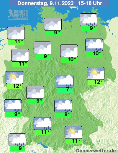 Am Nachmittag zeigt sich der Himmel meist stark bewölkt oder es ist bedeckt, in der Südosthälfte sowie im Westen einzelne Lichtblicke. Vor allem im Nordosten sowie in der Südhälfte fällt immer wieder Regen, dabei weht ein mäßiger, teils böiger Südwestwind.