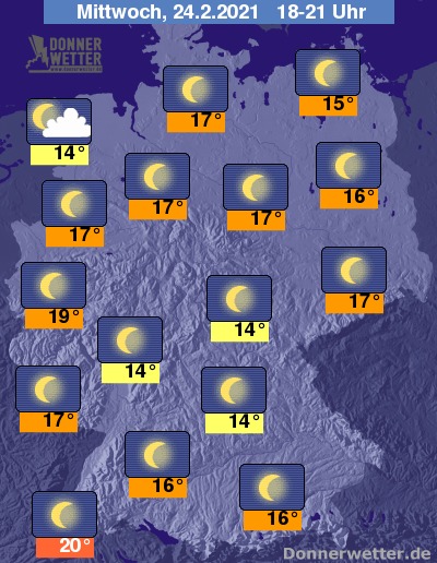 Heute Abend funkeln im gesamten Bundesgebiet die Sterne von einem wolkenlosen Himmel. Lediglich im Nordseeumfeld können wenige Wolken durchziehen. Es bleibt landesweit trocken bei sehr milden Werten von 14 bis 20 Grad.