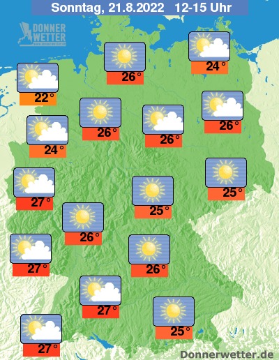 Heute Nachmittag ist es verbreitet heiter bis sonnig. Vor allem über den westlichen Landesteilen sind auch lockere Wolkenfelder unterwegs, dabei bleibt es trocken. Die Temperatur liegt bei 22 Grad an der Nordsee und bis 27 Grad entlang des Rheins.