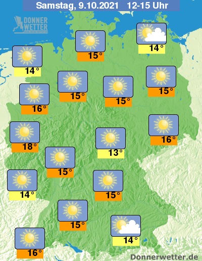 Heute Nachmittag scheint über dem Land verbreitet die Sonne, dabei ziehen nur hier und da, vor allem an der Ostsee um an den Alpen lockere Wolken durch. Es bleibt überall trocken bei Werten von 13 Grad im Eichsfeld und etwa 18 Grad im Rheinland.