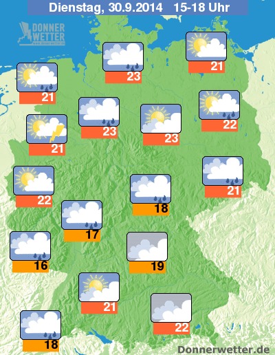 Heute Nachmittag ist es teils aufgelockert bewölkt, teilweise bilden sich aber auch dichte Quellwolken mit einhergehenden Schauern und möglichen Gewittern. Die Temperaturen bleiben jedoch auf meist spätsommerlichem Niveau und liegen zwischen 16 Grad im Bliesgau und rund 23 Grad in der Norddeutschen Tiefebene.