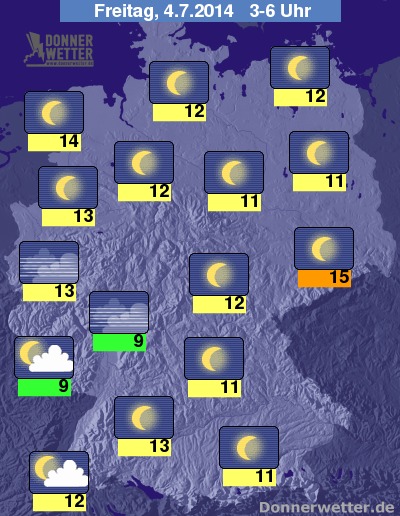 Auch in der Nacht bleibt uns der klare Himmel weitestgehend erhalten. Nur im Küstenumfeld und im Südwesten Deutschlands können gebietsweise ein paar Wolken durchziehen. Bei Tiefstwerten von 15 Grad in Dresden und 9 Grad im Westerwald bleibt es überall trocken.