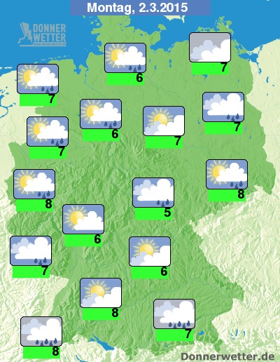 Heute ist es häufig stark bewölkt, gebietsweise kann die Bewölkung aber auch vorübergehend auflockern. Es bilden sich immer wieder, oft kräftige Schauer, zum Teil auch mit Schneeregen, Schnee und Graupel. Die Temperatur steigt auf 5 Grad im Coburger Land und bis 8 Grad im Oberrheingraben. Es weht verbreitet frischer bis starker, vor allem in den Küstenregionen und auf den Bergen auch stürmischer Wind, hier sind Sturmböen zu erwarten.