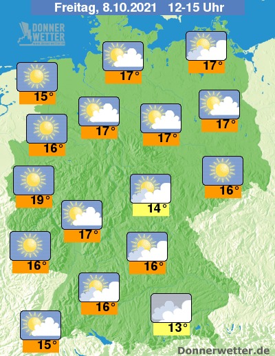 Heute Nachmittag ist es über dem Bundesgebiet verbreitet heiter oder sonnig. Im Alpenvorland hält sich jedoch auch oft starke Bewölkung. Es bleibt landesweit trocken bei Werten von 13 Grad in Berchtesgaden und bis 19 Grad im Rheinland.