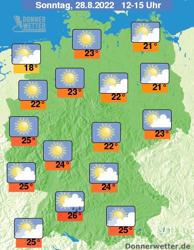 Heute Nachmittag ist es im Süden und Südosten oft stark bewölkt und hier bilden sich einzelne Schauer. An den Küsten ist es locker bis stark bewölkt und dabei trocken. Im übrigen Bundesgebiet ist es verbreitet heiter oder sonnig und es bleibt ebenfalls trocken. Die Temperatur liegt bei 18 Grad an der Nordsee und bis 26 Grad in Schwaben.