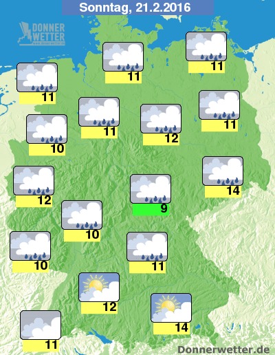 Die Temperaturen am Sonntag liegen bei Werten um 9 Grad C in Thüringen und 14 Grad C in Sachsen.