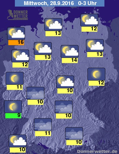 Tiefstwerte um 16 bis 8 Grad C in der Nacht auf Mittwoch.